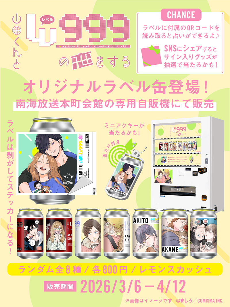 愛媛会場ロビー内にて、『山田くんとLv999の恋をする』オリジナルデザインの缶飲料を販売します♡